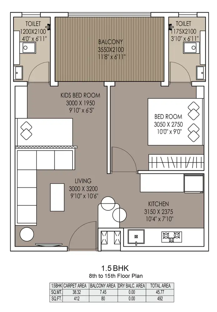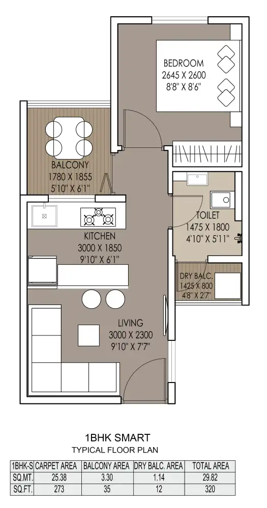 Available Apartment Type : 1RK, 1BHK, 2 BHK